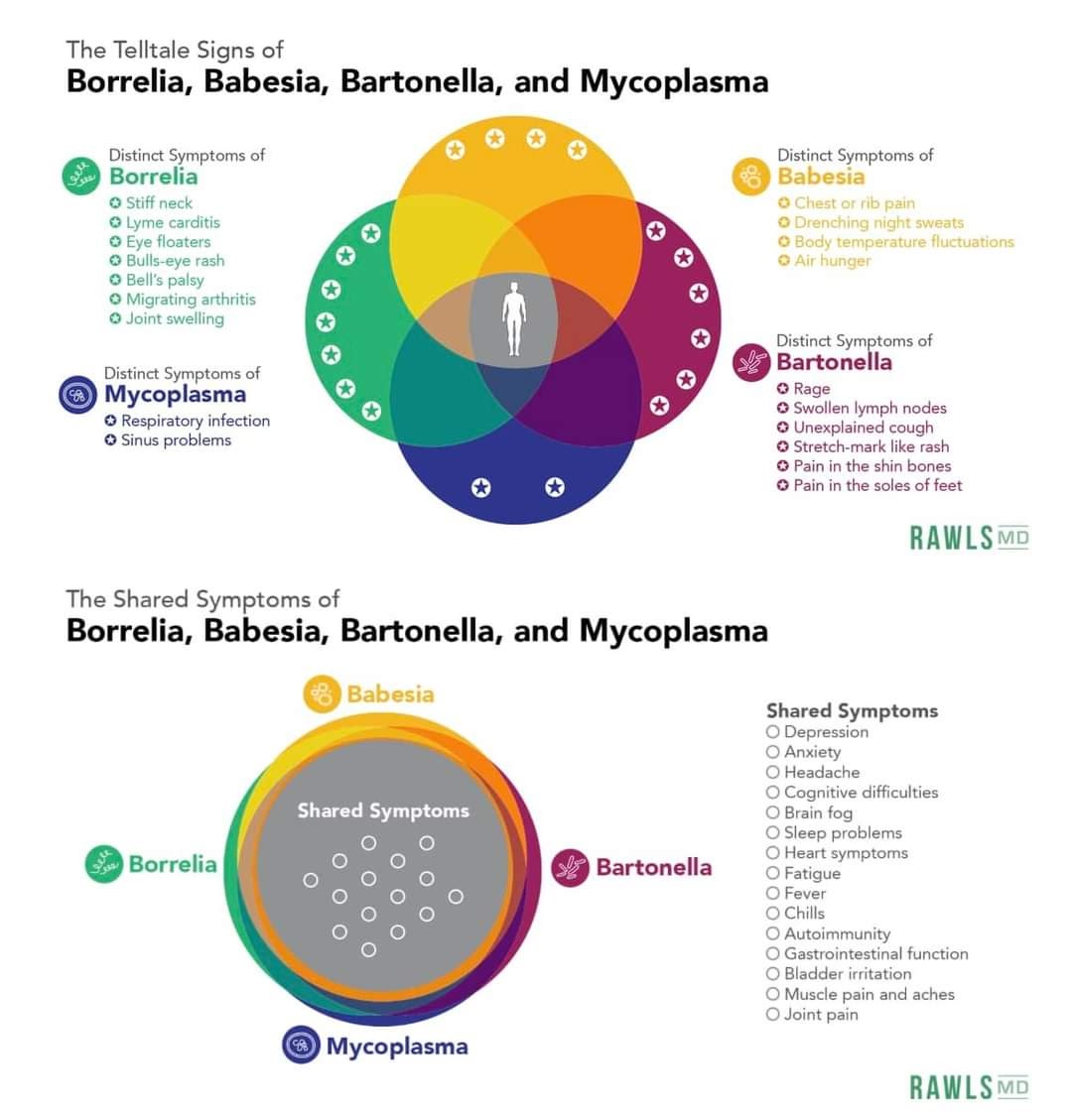 Along with Lyme, my blood shows an immune response to both Bartonella and Mycoplasma so far. We may find out more information about Babesia in the future. (See the images below for more information about symptoms of Lyme and symptoms of common co-infections.)