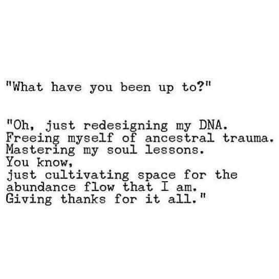 I always try to get out of the mud as fast as possible, because I don’t like sitting in the mud. But, I do know that it is needed at times. She also reminded me that I won’t be in the mud for long; I won’t stay there forever. She has known me long enough to know that I am not a permanent mud-sitter (🤣). After I sit in the mud, I can get back to redesigning my DNA, freeing myself of ancestral trauma, and mastering my soul lessons.