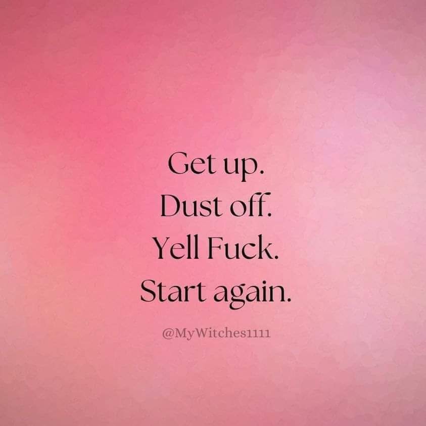 I think my response to these types of scenarios is emotionally healthy for the most part. At first, I am a little sad that we need to take a detour, and I try to give myself permission to be sad. Then, I get up, dust off, yell fuck, and start again 🤣 (see image below). What I try to remember is that this part of the process will also give us more info in some way. And, maybe my body needs to rest in order to get to the next part. One added benefit of pausing is that there is a slight decrease in fatigue and brain fog, and this helps me feel a little more like myself again for a quick second.