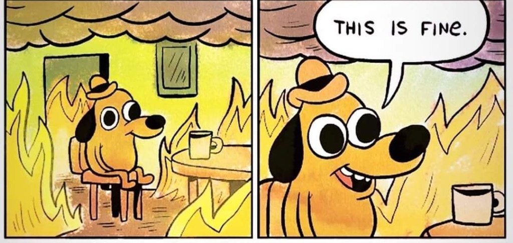 This image has been shared all over the internet on numerous occasions, and I love it. It makes me laugh every time I see it. I feel like our life has been like this for a while now, and unfortunately, it feels normal. However, we have high hopes that change is coming at some point. On some days, I am not sure how we remain optimistic, but somehow, we do.