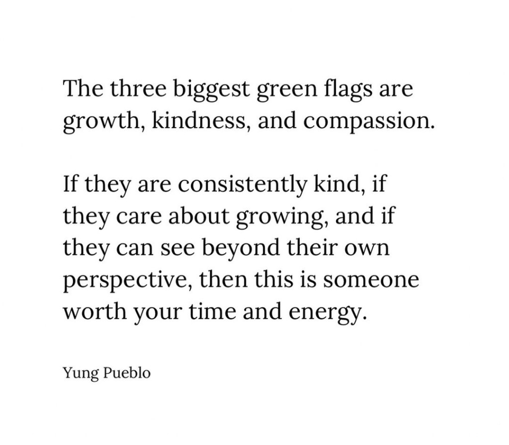 2) Surrounding myself with people who similarly value personal growth, kindness, and compassion should continue to be my priority. I want to be around people who inspire me to be the best person I can be.