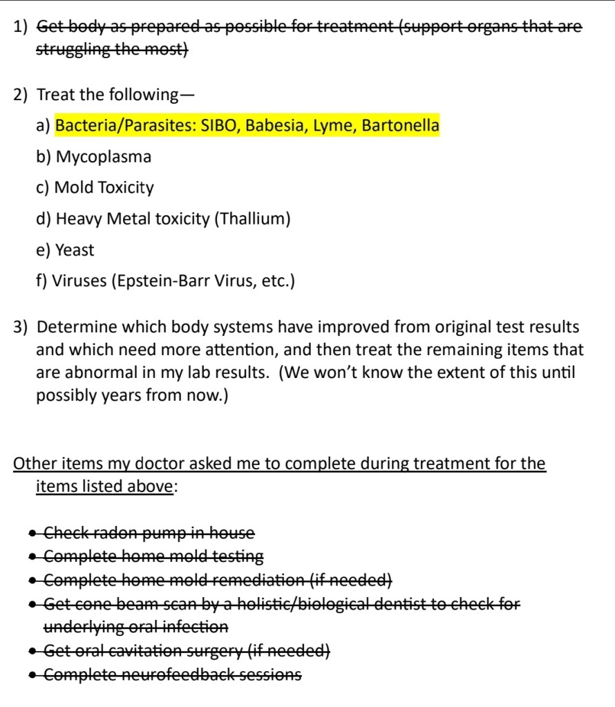 As I previously stated, the goal is to begin the mold toxicity treatment again at some point, but we have a few steps to complete before then. Since my body had been off of both bacteria and mold treatments for a few months as we were trying to get my body back to baseline, the bacterial overgrowth has come back stronger than ever (and likely mold, too). I have slowly and successfully increased a treatment protocol for bacterial overgrowth in the hopes that it will help kill enough of the bacteria in my body to be able to tackle mold again before we go back to bacteria full-time. Because of this increase, my abdominal pain is at a more manageable level. We are not sure how long I will be on this treatment protocol, but it is helping for now. Yay!
