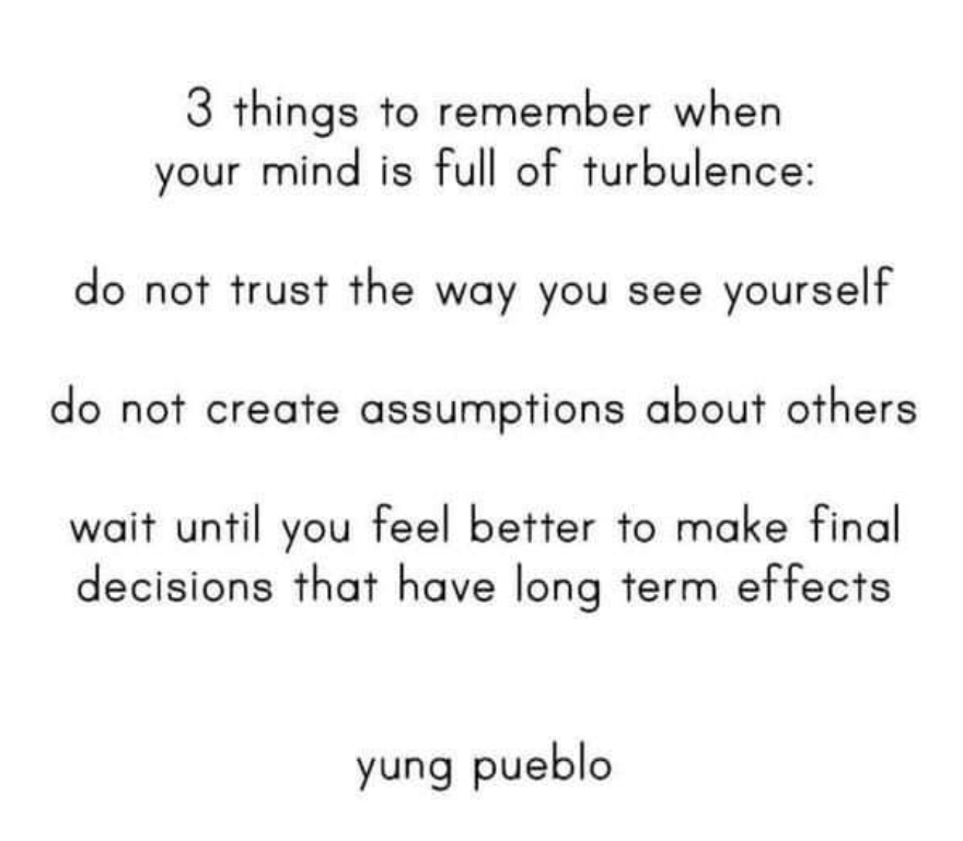 And, since my mind is turbulent, it is important for me to remember these 3 things: