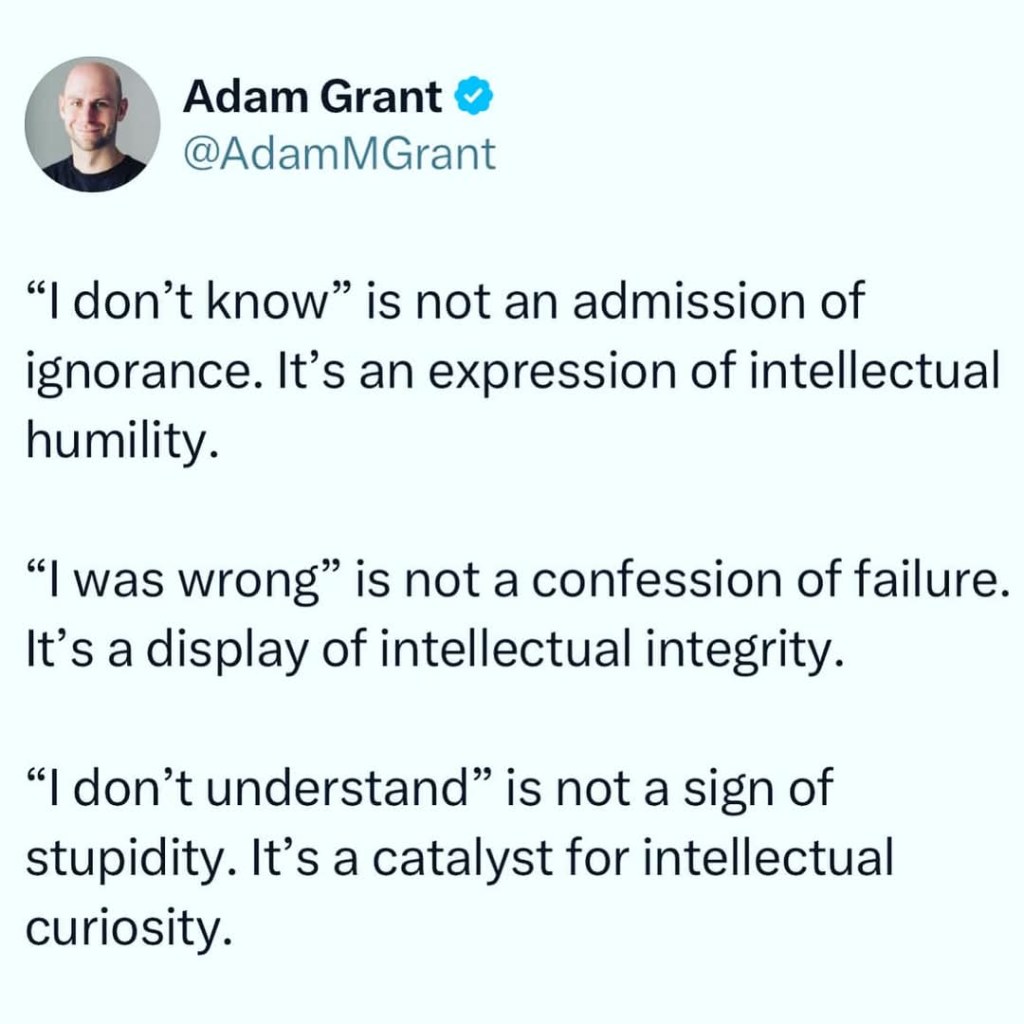 As usual, everything is confusing. Nothing has gone as planned. I have said, “I don’t know,” quite a bit over the last few weeks, and I am not sure that is going to change anytime soon. The good news, according to Adam Grant, is that I am intellectually humble. 🤣