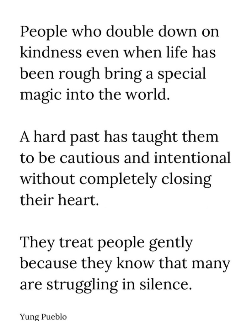 Our amazing therapist frequently reminds me of this, too. The fact that I am still open (with emotionally safe people) and kind and loving towards others after all that I have been through is a testament to all of the work I have done to be mentally and emotionally healthy. Apparently, many people who live alongside invisible complex chronic illnesses can become bitter and closed off to the world. [Side note: Being closed off is not the same thing as having boundaries. Being closed off is unhealthy while having boundaries is healthy and important. I am open, but I also have healthy boundaries.] I have done the work to not let the darkness change who I am at my core. And, I have become a better person along the way. I am grateful that I am the type of person who chooses to grow throughout life’s challenges versus staying stagnant.