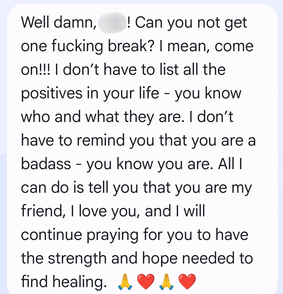 I have been reminded quite a few times in the last few weeks how amazing my supportive people are. After my last post, I received some very kind and supportive messages. Here is one example:
