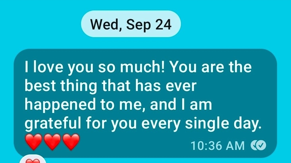 I have a husband who loves me dearly. A few weeks ago, he told me that he falls even more in love with me every single day. And, I love him dearly, too. Last week, I texted him this message:
