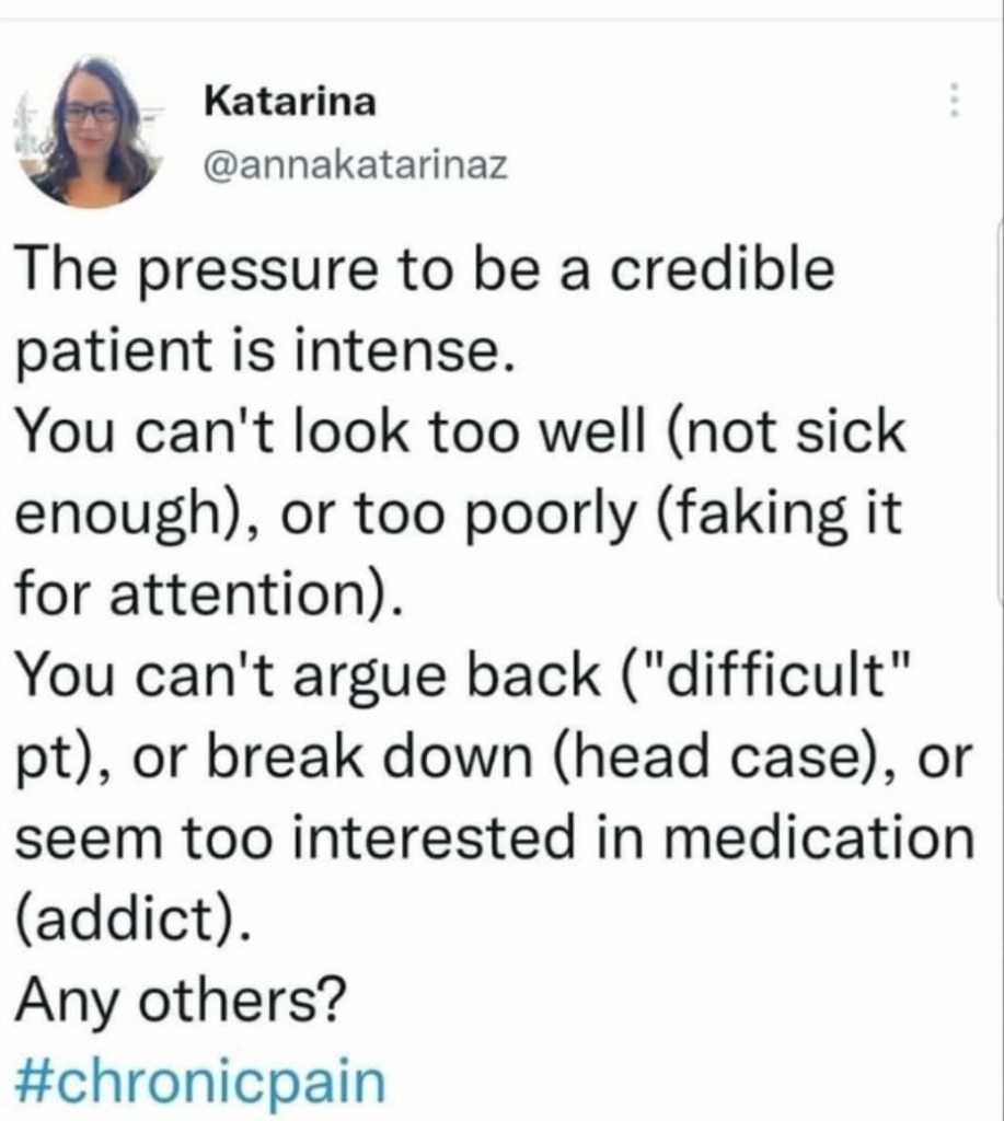 Obviously, I am tired due to the fact that I am living alongside an invisible complex chronic illness. I am physically ill, and I am in constant physical pain. On top of that, I am still trying to work full-time in order to help pay for my medical care that is primarily not covered by insurance. Then, there is the “job” of making sure I complete my daily regimen in order to be a semi-functioning human. I am also my own medical administrative assistant. The amount of time I spend talking to doctors, making appointments, completing paperwork, dealing with insurance, coordinating procedures, labs, treatment protocols, etc. is ridiculous. Both the physical and mental/cognitive load are unsustainable in the long-term. The reasons why someone who is living alongside an invisible complex chronic illness is tired are obvious to those of us living it, but are usually not obvious to the people who don’t have the experience themselves.