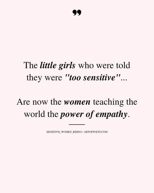 And, if you were told as a young girl that you were too sensitive, you are probably a woman who is now teaching the world the power of empathy.