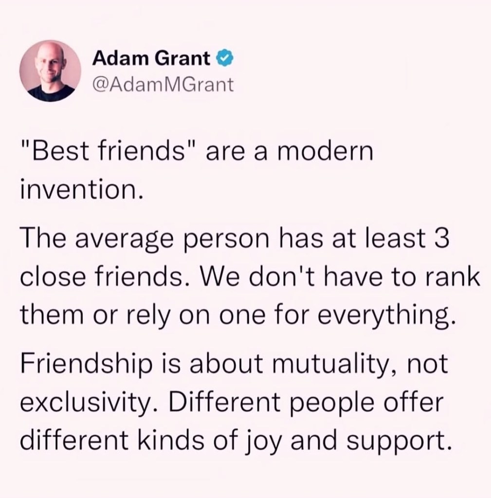 It is also interesting to note that “Best Friends” are a modern invention, and this friendship category can sometimes be more about exclusivity than mutuality.