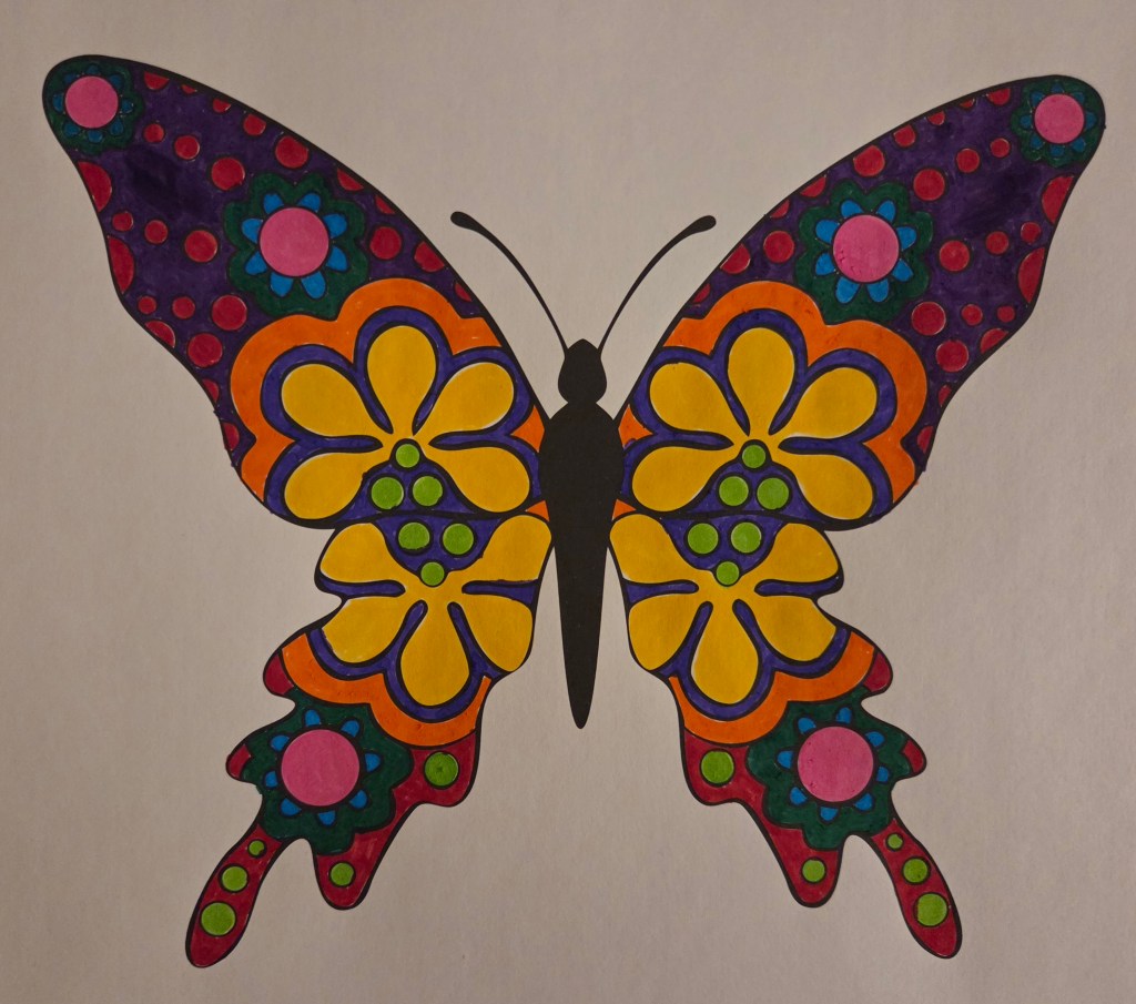 In addition, I have been going on my daily walks, reading, and/or coloring when I am feeling well enough to do so. One of my closest friends got me started on adult coloring. I tried adult coloring in the past, but I didn’t have the right tools/supplies. She gave me excellent recommendations on various supplies, and with a few substitutions due to my chemical sensitivities, I am testing out the hobby to see if I like it. I am definitely at the Beginner skill level, but here is what I completed over the weekend: