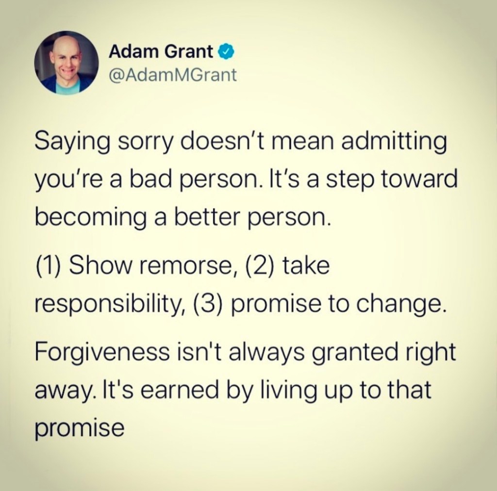 One person who has studied the science of apologizing is Adam Grant. Here is what he thinks makes a great apology: