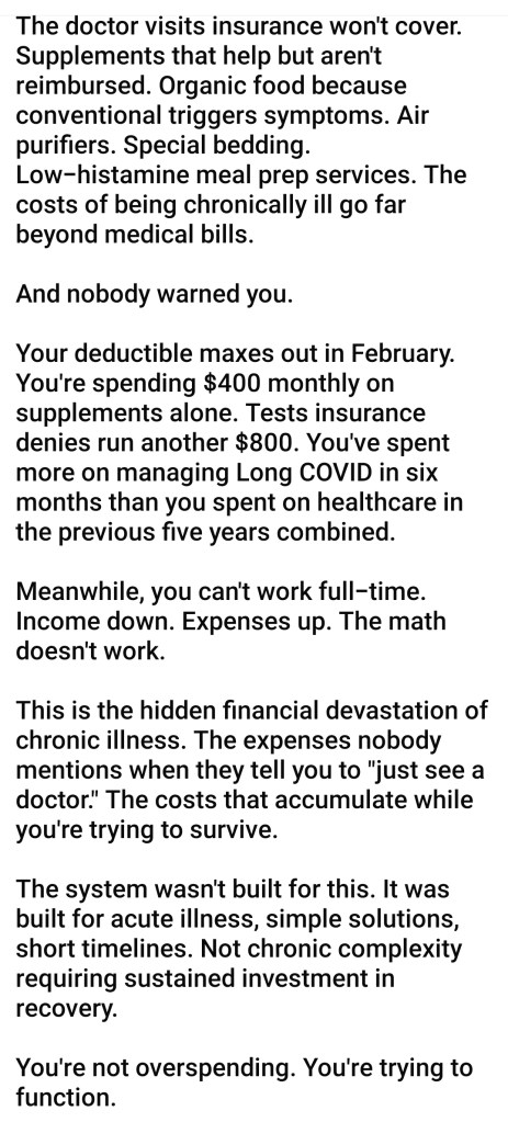 Brutal. The hidden financial devastation that comes with complex chronic illnesses. Living alongside so much uncertainty.